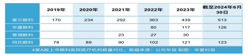 阐明2024年半年报,限度本年6月30日,何氏眼科的医疗机构数目为123家,已被华厦眼科(126家)迥殊。